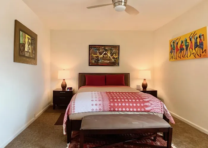Le domicile de 74 m² est situé à Palm Springs, à 10 minutes de marche de son centre. Le Parc aquatique Wet'n'Wild Palm Springs se trouve à 10 minutes en voiture.